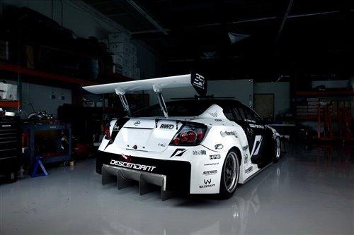 這輛賽車是在舊款Scion tC基礎(chǔ)上改裝而成的,是一款專為美國各類直線加速賽事而設(shè)計(jì)的賽車。它的發(fā)動(dòng)機(jī)功率高達(dá)1100馬力,采用四輪驅(qū)動(dòng)模式。為了確保它在賽道上的穩(wěn)定性,該車前后都安裝了大面積的定風(fēng)翼,以獲得巨大的下壓力。