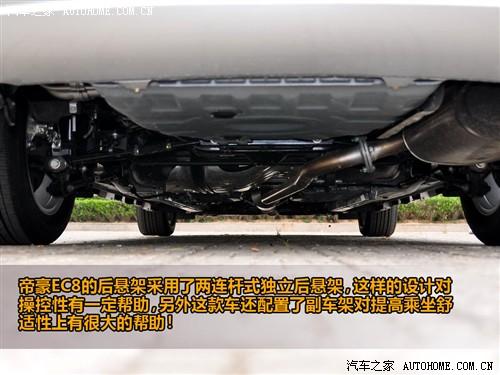 作為一款以乘坐為訴求的中型車,帝豪EC8在后懸掛上使用了與凱美瑞相同的雙連桿式獨立后懸掛,同時配合副車架的設計讓車輛的舒適性有了一個提高。