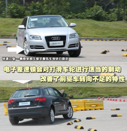 為了讓我們?nèi)轿惑w驗(yàn)奧迪A3 Sportback的性能,奧迪公司特意安排了難度極高的場(chǎng)地試駕。奧迪A3 Sportback的前懸掛為麥弗遜減震滑柱總成帶下部三角形控制臂,鋁制副車架和管型穩(wěn)定桿。