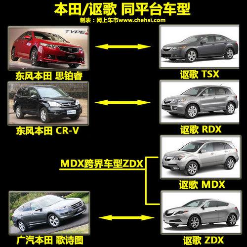 目前廣汽本田/東風(fēng)本田生產(chǎn)的部分車型都與謳歌車型同來自一個(gè)平臺(tái)。例如:東風(fēng)本田的高性能運(yùn)動(dòng)轎車思鉑睿就和謳歌TSX同平臺(tái)生產(chǎn)。同出一轍東風(fēng)本田的CR-V與謳歌RDX也存在同樣的關(guān)系。而即將上市的廣汽本田歌詩(shī)圖則是與謳歌MDX的跨界車型ZDX的平臺(tái)相同。廣汽本田歌詩(shī)圖上市后的價(jià)格明顯要比原裝引進(jìn)謳歌ZDX的價(jià)格低,當(dāng)然也更容易被中國(guó)消費(fèi)者所接受。