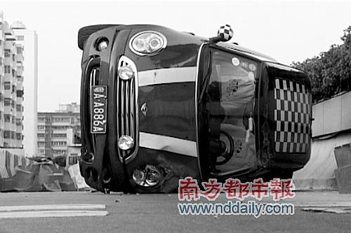 昨日早上6時(shí)30分許,一名帥哥帶著兩名女子,駕駛一輛紅色MINICOOPER在廣州越秀區(qū)下塘西路側(cè)翻。