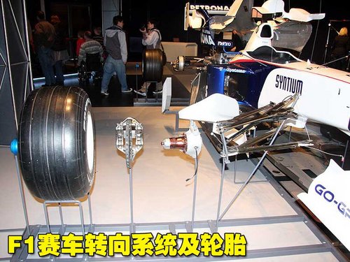 這張圖展現(xiàn)的是F1賽車轉(zhuǎn)向系、剎車系統(tǒng)及輪胎,其中我們看到F1賽車轉(zhuǎn)向拉桿為碳纖維材質(zhì),在保持強(qiáng)度的同時(shí)減輕賽車重量,而剎車系統(tǒng)是采用Brembo六活塞剎車卡鉗、碳纖維制動(dòng)襯墊、制動(dòng)碟。輪胎則是由普利司通獨(dú)家提供的Potenza系列賽車輪胎。