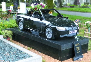 英國(guó)車迷史蒂夫·馬什去年去世。為表現(xiàn)他生前對(duì)汽車的熱愛,馬什的家人為他訂做一個(gè)“寶馬”車造型的墓碑。