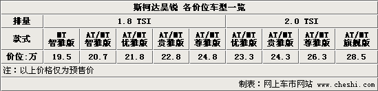 上海大眾斯柯達(dá)推出的全新B級(jí)車Superb昊銳,將于8月18日上市宣布價(jià)格。目前首批展車已經(jīng)運(yùn)抵北京部分斯柯達(dá)4S店,近期部分經(jīng)銷商還將舉辦小規(guī)模的試駕賞車活動(dòng)。與此同時(shí)記者也以消費(fèi)者的身份詢問了北京地區(qū)多家斯柯達(dá)授權(quán)經(jīng)銷商,通過詢問我們得知了斯柯達(dá)昊銳的預(yù)售價(jià)格區(qū)間為19.5-28.5萬(wàn)元,共分為9款車型: