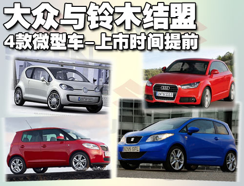 奧迪A2將在2011年正式上市,其中包括擴(kuò)3門和5門版、跑車版、敞篷版,大眾品牌將在2012年推出全新一代微型車UP。為了能在未來的價格競爭中獲得優(yōu)勢,大眾將為UP系列微型車開發(fā)包括全新設(shè)計的小排量發(fā)動機(jī)(1.0升及以下)、全新開發(fā)的手動/自動變速器在內(nèi)的一系列配套零部件。作為UP計劃的一個重要組成部分,大眾需要在短時間內(nèi)開發(fā)出1.0升/0.8升甚至0.6升多款全新發(fā)動機(jī),而大眾在1.0升以下排量發(fā)動機(jī)方面的技術(shù)儲備幾乎為零。與鈴木的聯(lián)盟將完全解決這些問題,微型車上市時間將提前。