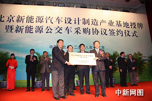 中新網(wǎng)1月9日電 日前,北京新能源汽車設(shè)計(jì)制造產(chǎn)業(yè)基地授牌暨新能源公交車采購協(xié)議簽約儀式在福田汽車舉行,國家科技部和北京市政府聯(lián)合向福田汽車授予了北京新能源汽車設(shè)計(jì)制造產(chǎn)業(yè)基地牌匾。