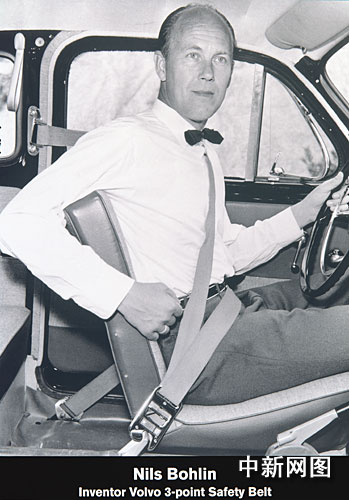 中新網(wǎng)1月16日電 2009年是三點(diǎn)式安全帶發(fā)明50周年,在汽車安全技術(shù)高度發(fā)達(dá)的今天,三點(diǎn)式安全帶仍然被認(rèn)為是最有效的汽車安全保護(hù)措施之一。要保住生命是如此簡單,只需拉住安全帶扣,越過胸前,系上帶扣就可以了!如果您系上了安全帶,那么您在交通事故中幸免于難的機(jī)率就提高了50%。三點(diǎn)式安全帶不論現(xiàn)在還是將來都是汽車?yán)镒钪匾囊粋安全細(xì)節(jié)。這一切都要感謝沃爾沃(Volvo)汽車的工程師尼爾斯•博林(Nils Bohlin),他于1959年發(fā)明了汽車三點(diǎn)式安全帶。世界上也許沒有第二個人能像他那樣挽救如此眾多的生命。