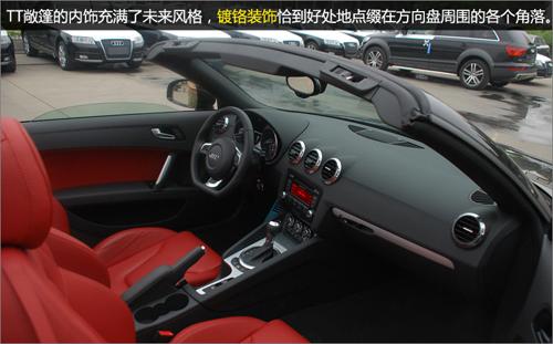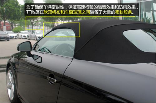 TT 敞篷采用的是軟頂,而并未隨大趨勢(shì)使用電折硬頂,軟篷的收折及儲(chǔ)存均比硬頂富彈性,優(yōu)點(diǎn)是無(wú)須占用車尾大量空間,篷身可選擇不同顏色,配搭出更多變化的視覺(jué)效果。而且,奧迪TT 敞篷采用的多層布制軟篷有優(yōu)秀的隔音效果,不必?fù)?dān)心高速行駛時(shí)會(huì)有巨大的風(fēng)噪。