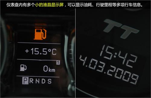 儀表盤內有多個小的液晶顯示屏,可以顯示油耗、行駛里程等多項行車信息。