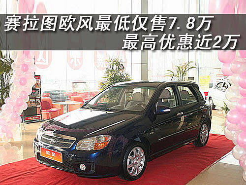賽拉圖歐風(fēng)是東風(fēng)悅達(dá)起亞汽車有限公司旗下的首款兩廂車型,全系有四個(gè)車型,價(jià)格區(qū)間為9.18萬元-11.68萬元。近日,記者在走訪北京地區(qū)東風(fēng)悅達(dá)起亞4S店時(shí)了解到:目前購買賽拉圖歐風(fēng)車型最高可以得到1.78萬元的現(xiàn)金優(yōu)惠,具體車型售價(jià)見下表: