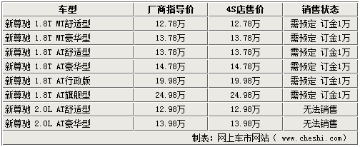經(jīng)銷商透露,現(xiàn)在各店內(nèi)的新尊馳基本為展車或已被客戶預訂的車輛,基本沒有現(xiàn)車可以滿足消費者的需要,消費者如需購買可以繳納1萬元訂金后等待20天左右即可提車。由于新尊馳為剛剛上市的新車,所以沒有任何形式的優(yōu)惠。同時銷售人員還說明,2.0L的新尊馳由于尚未大量投產(chǎn),故暫時無法銷售,請消費者諒解。