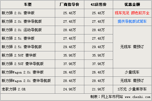 據(jù)斯巴魯北京地區(qū)4S店銷(xiāo)售人員介紹:新款力獅已經(jīng)到店,目前全部為2.0i豪華版及Wagon豪華版,2.0i現(xiàn)車(chē)比較充足,顏色有藍(lán)色、白色、銀色、黑色、灰色可選。另外還提供了2.0i導(dǎo)航版為試駕車(chē),而老款力獅還有少量庫(kù)存車(chē),現(xiàn)優(yōu)惠3萬(wàn)元。