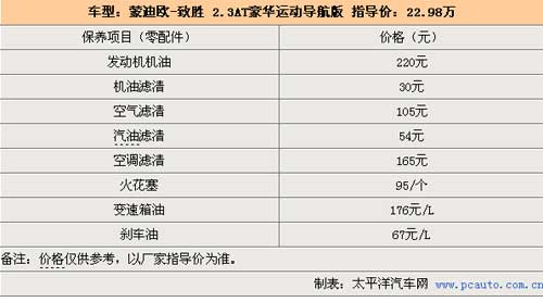 致勝首保為5000公里,之后每1萬公里保養(yǎng)一次。保修期限內(nèi),致勝車主可享受四次免費(fèi)更換發(fā)動(dòng)機(jī)機(jī)油和機(jī)油濾清器的服務(wù),因此保養(yǎng)花費(fèi)會(huì)相對(duì)減少。致勝每次小保養(yǎng)費(fèi)用為312元,空氣濾清器和汽油濾清器都是每10 000 km更換一次。由于致勝剛上市不久,所以并沒有更為詳盡的保養(yǎng)價(jià)格。在購(gòu)買致勝的時(shí)候,長(zhǎng)安福特有贈(zèng)送4次免費(fèi)更換機(jī)油機(jī)濾保養(yǎng)的政策,因此按這樣計(jì)算的話,2萬km之內(nèi)的保養(yǎng)花費(fèi)會(huì)比較少。