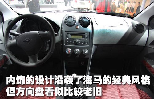 海馬丘比特的內(nèi)飾設(shè)計(jì)沿襲了海馬汽車的經(jīng)典造型風(fēng)格,采用深灰色內(nèi)飾顏色布局,整體來看比較典雅大方,但方向盤的設(shè)計(jì)看似比較老舊。