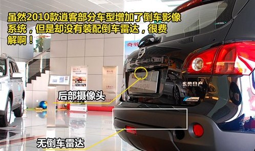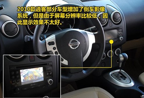 新的逍客在外觀上沒(méi)有任何變化,僅僅只在原來(lái)6款車(chē)身顏色的基礎(chǔ)上增加夢(mèng)幻銀色。更多的變化出現(xiàn)在車(chē)輛內(nèi)部的配置上,部分車(chē)型增配了倒車(chē)影像系統(tǒng),但我們卻認(rèn)為這個(gè)并不實(shí)用,因?yàn)槠聊恢挥?.3英寸,也就是和一般車(chē)載導(dǎo)航儀的大小相當(dāng),而且分辨率比較低,所以顯示效果不好。令人費(fèi)解的還有,有了攝像頭之后,逍客卻沒(méi)有裝配倒車(chē)?yán)走_(dá),其實(shí)大家在倒車(chē)的時(shí)候,倒車(chē)影像只是作為參考,主要還是依靠倒車(chē)?yán)走_(dá)的聲音來(lái)判斷距離遠(yuǎn)近,所以沒(méi)有倒車(chē)?yán)走_(dá)很不方便。