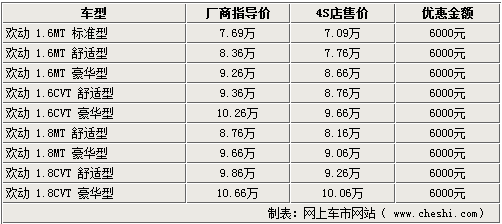 銷售人員表示,現(xiàn)在店內(nèi)的歡動車型較齊全,全系車型均可享受6000元的現(xiàn)金優(yōu)惠,同時(shí)還有1000元至2000元的大禮包贈送,同樣超值,但不可折換現(xiàn)金。