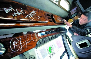 “小皇帝”詹姆斯、姚明隊(duì)友“麥蒂”、“大鯊魚(yú)”奧尼爾、“蜂王”保羅、“小黑豆”布魯克斯、法國(guó)足球巨星亨利、“香港天王”劉德華……司機(jī)白先生駕駛著一輛美國(guó)進(jìn)口道奇公羊商務(wù)車(chē),每天他都會(huì)擦拭著車(chē)內(nèi)這些明星們的簽名,這輛車(chē)也成了名副其實(shí)的“明星專(zhuān)車(chē)”。