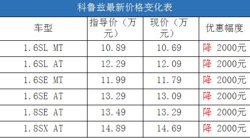 近日,編輯從北京地區(qū)綜合經(jīng)銷(xiāo)商處了解到,科魯茲有少量紅色、銀色和白色現(xiàn)車(chē),購(gòu)車(chē)全系可以?xún)?yōu)惠2000元現(xiàn)金,這對(duì)于該車(chē)一直價(jià)格穩(wěn)定車(chē)源緊張的情況而言非常令人驚喜。據(jù)經(jīng)銷(xiāo)商透露,消費(fèi)者要想以這個(gè)價(jià)格提車(chē),需要在店內(nèi)做購(gòu)車(chē)一條龍服務(wù),其中車(chē)輛四項(xiàng)基本保險(xiǎn)可以打8.8折(約合4000-5000元左右)。以下是科魯茲最新價(jià)格變化表: