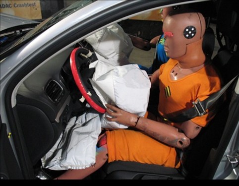 在成人保護方面:在正面碰撞過程中,車廂的結(jié)構(gòu)剛性出色,受碰撞后變形較小,A柱內(nèi)陷的幅度不超過10mm。對于模擬人全身各區(qū)域的保護都十分到位。膝部氣囊能夠?qū)οドw和大腿部位提供比較充分的保護。無論乘員的坐姿如何,氣囊都能夠達到同樣等級的保護效果。在側(cè)面障礙物碰撞中,高爾夫獲得高分。但胸部保護丟了一分。