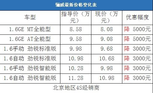 近日,編輯從北京地區(qū)東風日產(chǎn)4S經(jīng)銷商處了解到,驪威的現(xiàn)車比較充足,每款車型都有少量現(xiàn)車在售。目前購車最高有5000元的現(xiàn)金優(yōu)惠,與去年的4S優(yōu)惠幅度相同,但現(xiàn)車緊張的狀況已經(jīng)解決。以下是驪威最新價格變化表: