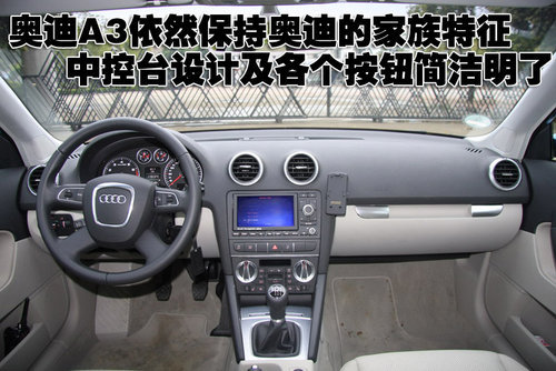 奧迪A3依然保持奧迪的家族特征,中控臺(tái)設(shè)計(jì)及各個(gè)按鈕簡(jiǎn)潔明了。其三輻式真皮方向盤配備集成控制按鈕,而白色冷光儀表盤突出視覺(jué)效果的同時(shí),又方便駕駛員讀取信息。