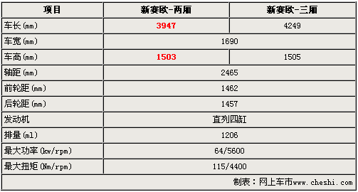 新賽歐兩廂版在保持車身寬度不變的基礎(chǔ)上,將車身長度和車身高度分別縮短和降低了302mm和2mm。新賽歐兩廂版雖然在車身尺寸方面略有變化,但整車軸距依然與三廂版車型保持一致,達(dá)2465mm。新賽歐兩廂版入門級車型搭載排量為1.2升的S-TEC系列發(fā)動(dòng)機(jī),最大功率和扭矩分別為64Kw和115Nm,與之相匹配的5速手動(dòng)變速器和EMT半自動(dòng)變速箱。