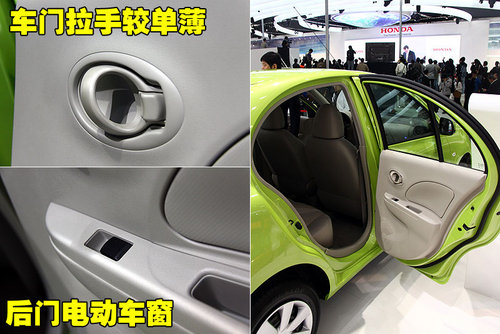 東風(fēng)日產(chǎn)瑪馳的四門車窗升降均為電動升降,駕駛席側(cè)的車窗為一鍵式升降。中控鎖和車窗鎖定鍵也分布在這里,消費者無需扭動身體即可完成一系列的操作,使用起來簡單方便。