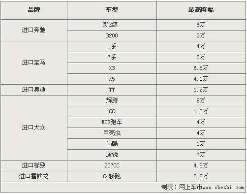 隨著希臘債務(wù)危機(jī)的不斷惡化,歐元對(duì)人民幣等匯率一路走低。以央行公布的匯率中間價(jià)計(jì)算,去年12月31日,1歐元兌人民幣9.7971元,而今年的5月17日,1歐元只相當(dāng)于8.4279元人民幣。按此計(jì)算,今年5個(gè)半月以來(lái),人民幣對(duì)歐元已升值16.25%。而德國(guó)、法國(guó)等所處歐元區(qū)的汽車(chē)出口大國(guó),均有奔馳、寶馬、奧迪、大眾、標(biāo)致以及雪鐵龍等車(chē)型進(jìn)口到國(guó)內(nèi),所以相應(yīng)的降幅也有所提升。