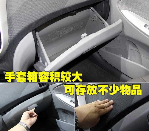 副駕駛位置的手套箱沒有阻尼設(shè)計(jì),打開時(shí)依靠重力自由下落,大容積手套箱能夠滿足車主日常放置常用物品的需求。