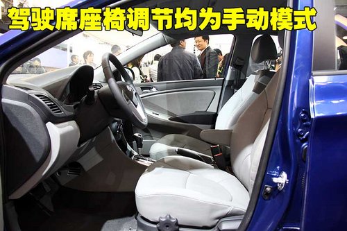 北京現(xiàn)代Verna整車均為真皮座椅,駕駛席座椅前后、高低、傾角與靠背角度為手動調(diào)節(jié),腰靠調(diào)節(jié)也為手動,各旋鈕四周做工細致、縫隙均勻。
