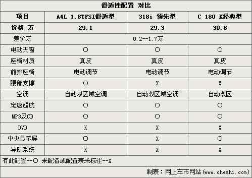 為了讓駕駛變得更輕松讓旅程變得更愜意,高端轎車一般都會(huì)具備較為全面的舒適娛樂(lè)設(shè)施。這三款車型基本上都是車系的入門(mén)產(chǎn)品,因此在配置上豪華型有所欠佳,實(shí)用性上也全部沒(méi)有配備GPS導(dǎo)航系統(tǒng)和DVD播放功能。不過(guò)3款車型均把一觸式防夾車窗、4門(mén)一觸式車窗、CD機(jī)作為了標(biāo)準(zhǔn)配備,進(jìn)一步豐富了整車的功能性和娛樂(lè)性。其中奧迪A4L還提供了中央顯示屏以及雙區(qū)域的自動(dòng)恒溫空調(diào),應(yīng)該說(shuō)是更為細(xì)致入微的。