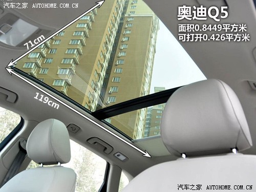 奧迪Q5熱度不減,自上市以來(lái)持續(xù)加價(jià)售車(chē),不過(guò)我們今天不關(guān)心它什么時(shí)候停止加價(jià),只來(lái)看看它的全景天窗是否夠吸引人。應(yīng)該說(shuō),跟其他幾款同級(jí)別的車(chē)型相比,Q5的天窗看起來(lái)要更加美觀,因?yàn)樗鼪](méi)有用一根過(guò)于明顯的橫梁將天窗一分為二,雖然說(shuō)后半部分也并不能打開(kāi),但至少視覺(jué)上沒(méi)有阻隔感,整體性要更強(qiáng)。