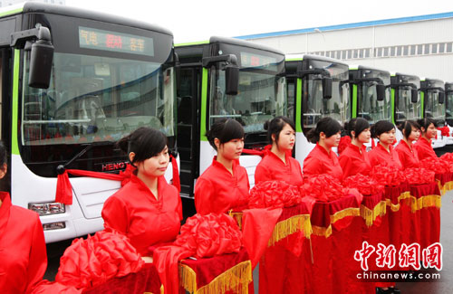 中新網(wǎng)重慶6月11日電 (記者 郭晉嘉)11日,重慶首批50輛新能源氣電混合動力公交車交付該市公交集團使用,一輛車每年可節(jié)約燃氣近萬立方米。