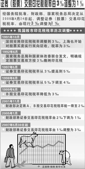 去年5月30日,證券(股票)印花稅率由1%。提高到3%。,股票市場在隨后的幾個(gè)交易日內(nèi)出現(xiàn)大幅下跌。而從去年11月以來,在短短的不到130個(gè)交易日內(nèi),股指下跌了50%,市場中人氣渙散,呼吁下調(diào)印花稅的呼聲日益高漲。