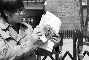 昨日上午,王昊來到位于金融街的工商銀行,將“內(nèi)需金”取出,賬戶隨之注銷。為紀(jì)念“內(nèi)需金”計劃,王昊要求銀行打印匯款詳單。由于匯款網(wǎng)友眾多,工作人員打印詳單花了2個多小時。