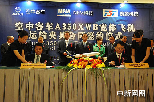 中新網(wǎng)天津10月20日電(郭曉帆)10月20日,空中客車公司與北方重工集團(tuán)旗下的法國NFM科技公司,在天津簽署總額約3000萬美元的空客A350XWB寬體飛機(jī)專業(yè)運(yùn)輸夾具設(shè)計與制造采購合同。根據(jù)合同,至2016年,北方重工集團(tuán)控股的NFM科技公司將為空客公司最新推出的飛機(jī)項(xiàng)目——A350XWB寬體飛機(jī)分批設(shè)計和制造專業(yè)運(yùn)輸大部件夾具80套,用于將分布在歐洲各工廠的A350XWB寬體飛機(jī)大部件,運(yùn)送到法國圖盧茲的A350XWB飛機(jī)總裝線。