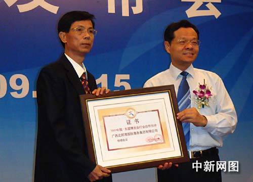 發(fā)布會(huì)上,中共廣西壯族自治區(qū)委員會(huì)常委、自治區(qū)副主席陳武為中國(guó)銀行廣西分行、廣西中煙、廣西北部灣國(guó)際港務(wù)集團(tuán)有限公司、上海通用汽車有限公司等此次與中國(guó)—東盟博覽會(huì)簽署合作伙伴協(xié)議的38家企業(yè)頒發(fā)證書(shū),表明雙方合作的極大誠(chéng)意。