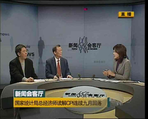李小萌:你好觀眾朋友,歡迎來(lái)到正在直播的《新聞會(huì)客廳》。今天上午十點(diǎn),國(guó)家統(tǒng)計(jì)局公布了2009年1月居民消費(fèi)價(jià)格指數(shù),也就是CPI指數(shù)是1.0%,這也創(chuàng)下了2006年8月至今最新的一個(gè)低點(diǎn)。今天我們就請(qǐng)到國(guó)家統(tǒng)計(jì)局總經(jīng)濟(jì)師姚景源先生來(lái)和我們共同通過(guò)理解CPI,來(lái)理解我們當(dāng)下的生活,以及未來(lái)的生活會(huì)發(fā)生什么樣的變化,歡迎您姚總,同時(shí)在場(chǎng)外我們也請(qǐng)到兩位經(jīng)濟(jì)領(lǐng)域的專(zhuān)業(yè)人士會(huì)提出他們的觀點(diǎn),帶出他們的聲音。 而坐在姚總旁邊的是三聯(lián)生活周刊的副總編輯李鴻谷先生,今天請(qǐng)您來(lái),我知道您對(duì)經(jīng)濟(jì)其實(shí)涉獵也很多,但是你今天的任務(wù)是最普通人的角度,最普通人的觀點(diǎn)來(lái)觀察和提問(wèn)好嗎?