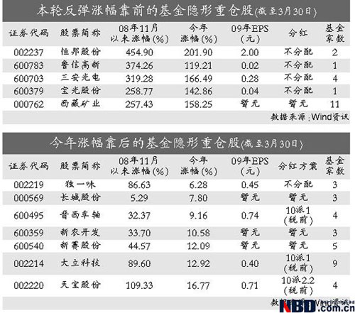 剔除基金去年四季度減持和持股不變的品種,基金年報中持有的隱形重倉股多達(dá)176只,而這些基金隱形股跑贏了基金重倉股。Wind統(tǒng)計顯示,自去年11月7日至今年3月30日,這176只股票平均累計漲幅108.9%,今年平均累計漲幅52.3%。