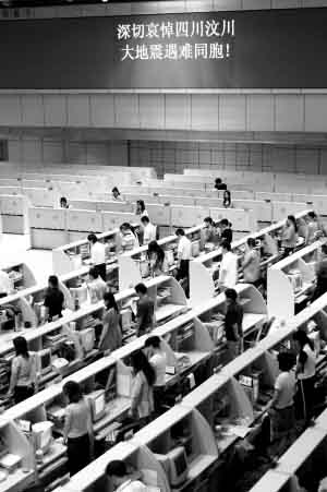 昨天一早,一位“夢不見了”的投資者最先在網(wǎng)上發(fā)帖。這篇題為“全國哀悼日(19日至21日)我們鎖倉為汶川地震遇難同胞致哀”的帖子這樣寫道:“5月19日至21日是全國哀悼日,讓我們股民也用自己的行動(dòng)來表達(dá)對(duì)汶川地震中遇難同胞的深切哀悼,讓我們共同鎖倉三天!為災(zāi)區(qū)同胞獻(xiàn)上自己的愛心,為災(zāi)區(qū)同胞祈福!”黑色加粗的字體、簡單樸素的語言,卻道出了大批投資者的心聲。在19日至21日的全國哀悼日中,投資者的眼中已沒有股市。