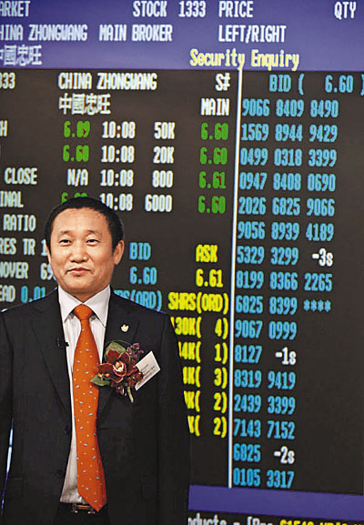 中國(guó)忠旺5月8日在香港證券交易所掛牌上市,董事長(zhǎng)劉忠田身家達(dá)233億元人民幣,較“2009新財(cái)富500富人榜”榜首江蘇富豪沈文榮的200億元人民幣為多,順利“晉升”為內(nèi)地首富。