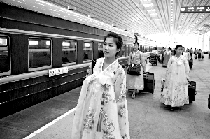 昨日,朝鮮血海歌劇團(tuán)《紅樓夢》劇組的演職人員在遼寧丹東邊防檢查站辦理出境手續(xù)。當(dāng)日上午,朝鮮血海歌劇團(tuán)《紅樓夢》劇組的197名演職人員結(jié)束了在中國10余個(gè)城市兩個(gè)多月的巡演,從遼寧丹東邊防檢查站開設(shè)的特別通道出境,乘坐丹東至朝鮮平壤的專列回國。新華社發(fā)