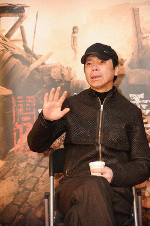 Q:你的夢(mèng)想就是有生之年拍《溫故1942》,《集結(jié)號(hào)》里面有那么一點(diǎn)影子,《唐山大地震》是講災(zāi)難,就目前情況看,《溫》可以實(shí)現(xiàn)多少了?