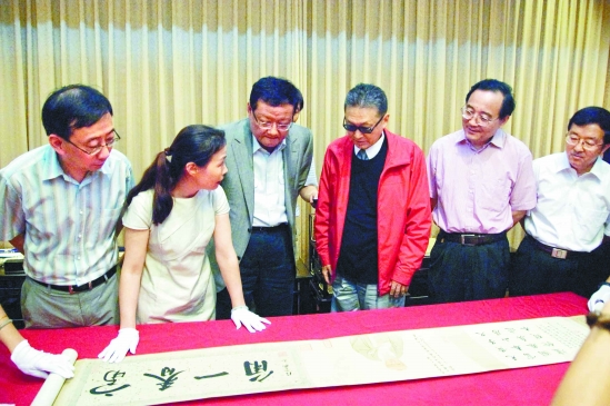 陳館長(zhǎng)對(duì)本報(bào)記者說(shuō):“其實(shí)李敖這一小時(shí)的時(shí)間主要都用來(lái)看畫了。浙博這次為李敖準(zhǔn)備了包括黃公望的《富春山居圖》、趙孟頫的《吳興賦》、徐渭的《葡萄圖軸》、吳昌碩的《鼎盛圖》、《紅梅圖》,任伯年的《羲之籠鵝圖》在內(nèi)的10件珍貴書畫作品,并且由浙博的書畫部主任王小紅一一為他講解!笨串嫊r(shí),《富春山居圖》從恒溫恒濕的真空柜中取出,李敖得以近距離觀看?葱煳嫉漠嫊r(shí),李敖回憶起徐渭當(dāng)年的經(jīng)歷,感慨他懷才不遇。他對(duì)所有畫的筆法、題跋還有裱畫的方式都很感興趣。