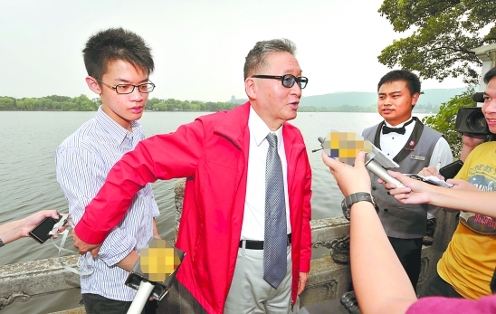 昨天下午,杭州劉莊,只睡了4個小時的李敖在接受完省領(lǐng)導(dǎo)接見、媒體訪問和午餐以后,本來已經(jīng)回房午休了,結(jié)果中途他拉著兒子的手出來,兩個人悄悄地走到湖邊欣賞風(fēng)景。那時,留在劉莊的記者所剩不多,看到父子兩個親昵交談的背影都有點不好意思上前打擾。終于有人鼓起勇氣和李敖搭話,他就感慨:“我們一家人其實從來沒一起出來旅游過,這次以后也許也沒有更多的機(jī)會了!庇浾弑桓腥玖,舉起相機(jī)為他們父子在湖邊留下合影。