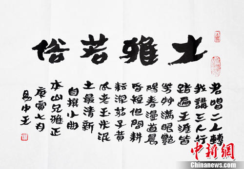 酷愛書法的趙本山和易中天彼此都寫下一幅書法。易中天贈趙本山的墨寶為“大雅若俗——君唱二人轉(zhuǎn),我講三人行。踏遍天涯皆芳草,滿眼艷陽春。漫道晨昏短,但問耕耘深。茄子黃瓜老玉米,泥土最清新!