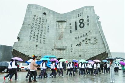 當(dāng)日,許多國內(nèi)外游客和當(dāng)?shù)厥忻、中小學(xué)生等冒雨來到沈陽“九·一八”歷史博物館參觀訪問。參觀隊(duì)伍長達(dá)百米,在博物館中人們重溫歷史,勿忘國恥,珍愛和平。據(jù)博物館介紹,近幾日每天大約有近萬人參觀游覽。