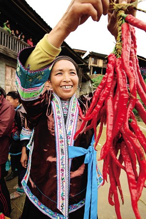 “以前村民們種辣椒只種一點給自家吃,交通不便,種多了怕沒人收購。2008年,村里成立了辣椒專業(yè)合作社,負責收購、銷售,還常請技術人員傳授種植技術。”花孖村村支書韋科介紹,沒有成立辣椒專業(yè)合作社之前,花孖村辣椒種植面積只有七八十畝,現(xiàn)在已擴展到六七百畝。通過辣椒專業(yè)合作社,“花孖辣”已成為桿洞鄉(xiāng)的品牌,苗鄉(xiāng)“辣妹”們的日子,也如紅辣椒一般,一天天紅火起來。