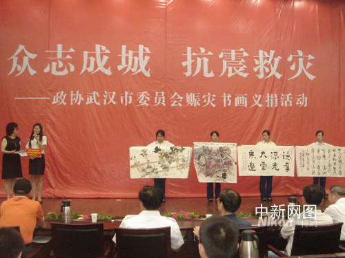 為此,武漢市政協(xié)23日貫徹中央抗震救災(zāi)戰(zhàn)略部署,發(fā)揮人民政協(xié)的優(yōu)勢(shì)和特色,組織書畫藝術(shù)家、企業(yè)家進(jìn)行書畫義捐、拍賣活動(dòng),全力援助災(zāi)區(qū)生產(chǎn)自救和災(zāi)后重建工作。