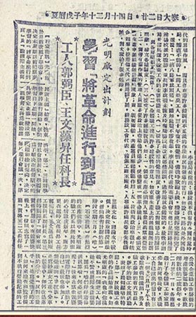 4.1949年1月12日《人民日?qǐng)?bào)》第3版刊登的報(bào)道:光明廠定出計(jì)劃,學(xué)習(xí)《將革命進(jìn)行到底》